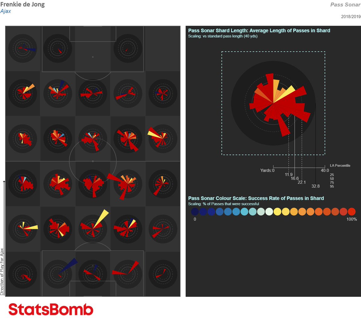 Estos son los mapas de pases de 2/3 primeras jornadas de Liga en el primer año de Frenkie. Jugando como interior pero alejadísimo de lo que era hace unos meses. Nada de base de la jugada, nada de libertad. Le costó mucho.