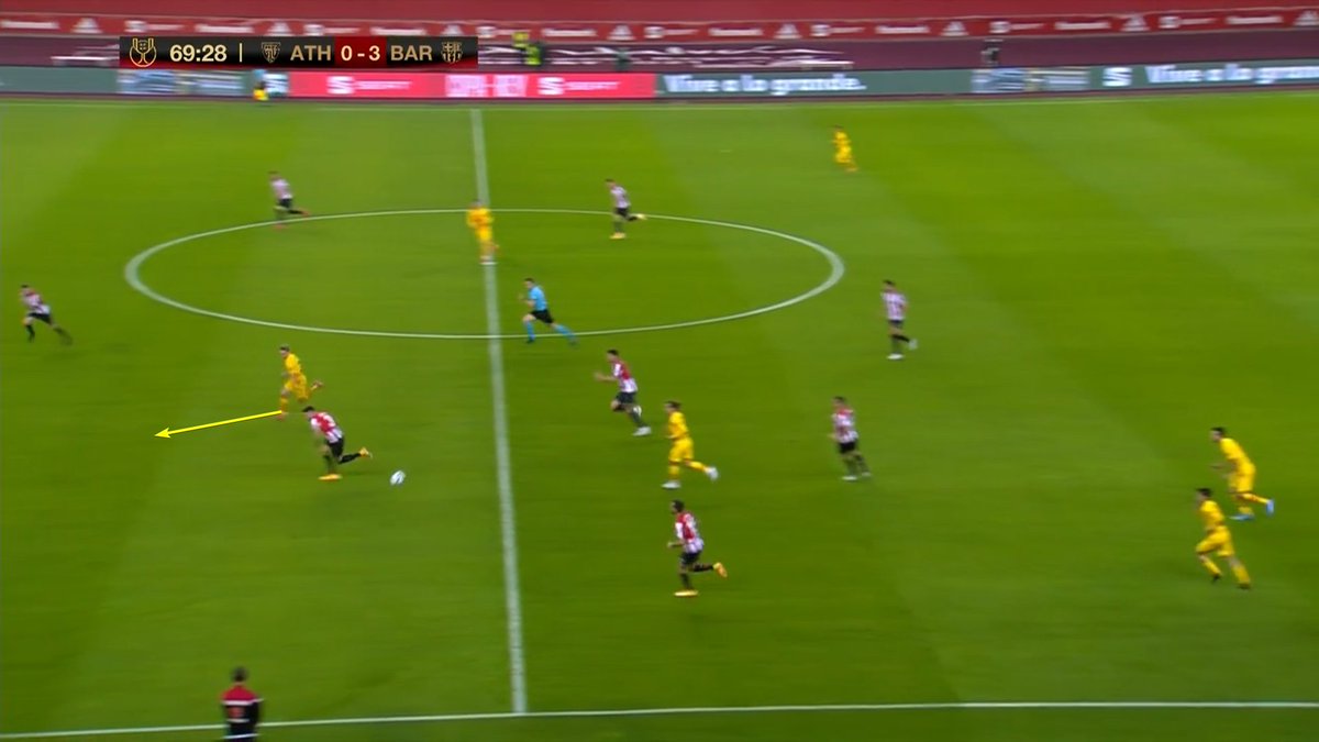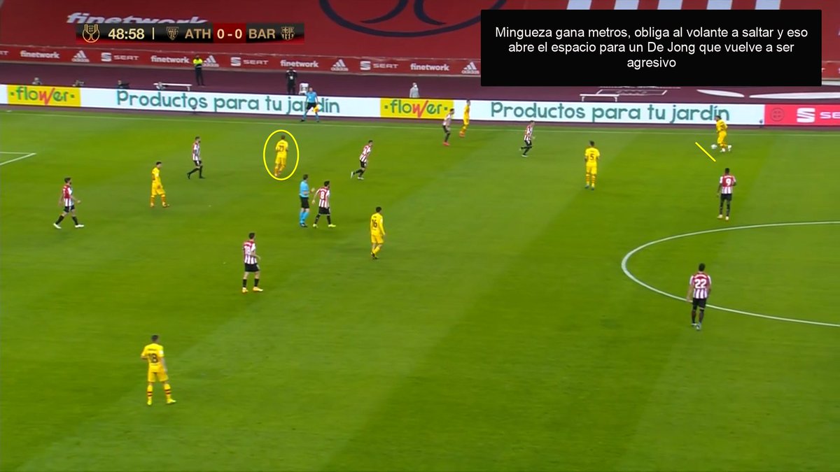 De repente, Frenkie pasa a ser un atacador de espacios brutal. Empieza a ser no solo útil, sino DOMINANTE cambiando lo que hace no tanto le había hecho valioso. De recibir al pie y en su campo a hacerlo al espacio y en área rival.