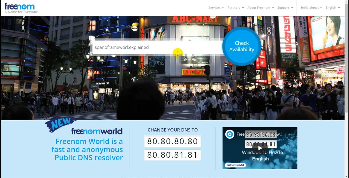 وفي الصفحة الرئيسية قم بالبحث عن اسم الدومين الذي تريده في خانة البحث واضغط check availability