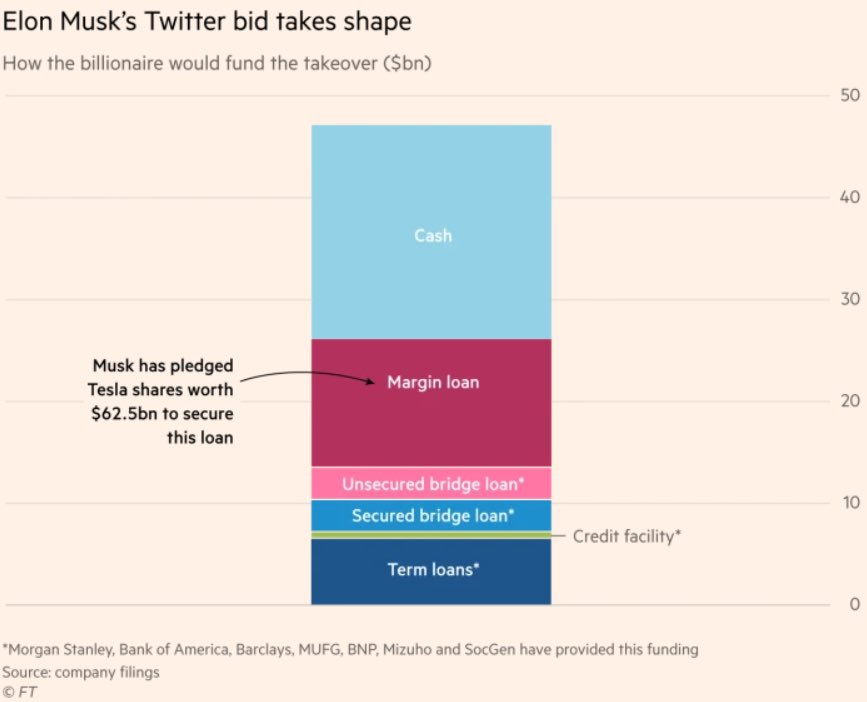 فعليا لم يقدم إيلون سوى 21$ مليار فقط، بينما اقترض من 12 بنك بقيادة @MorganStanley مبلغ 12.5$ مليار ضد أسهمه بتيسلا، و13$ مليار كقرض آخر