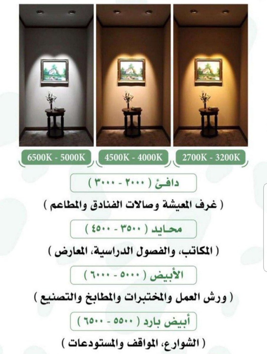 بعض فراغات تحتاج دفء بالإضاءة خلاف بعض الفراغات الأخرى تحتاج نشاط وحيوية✅