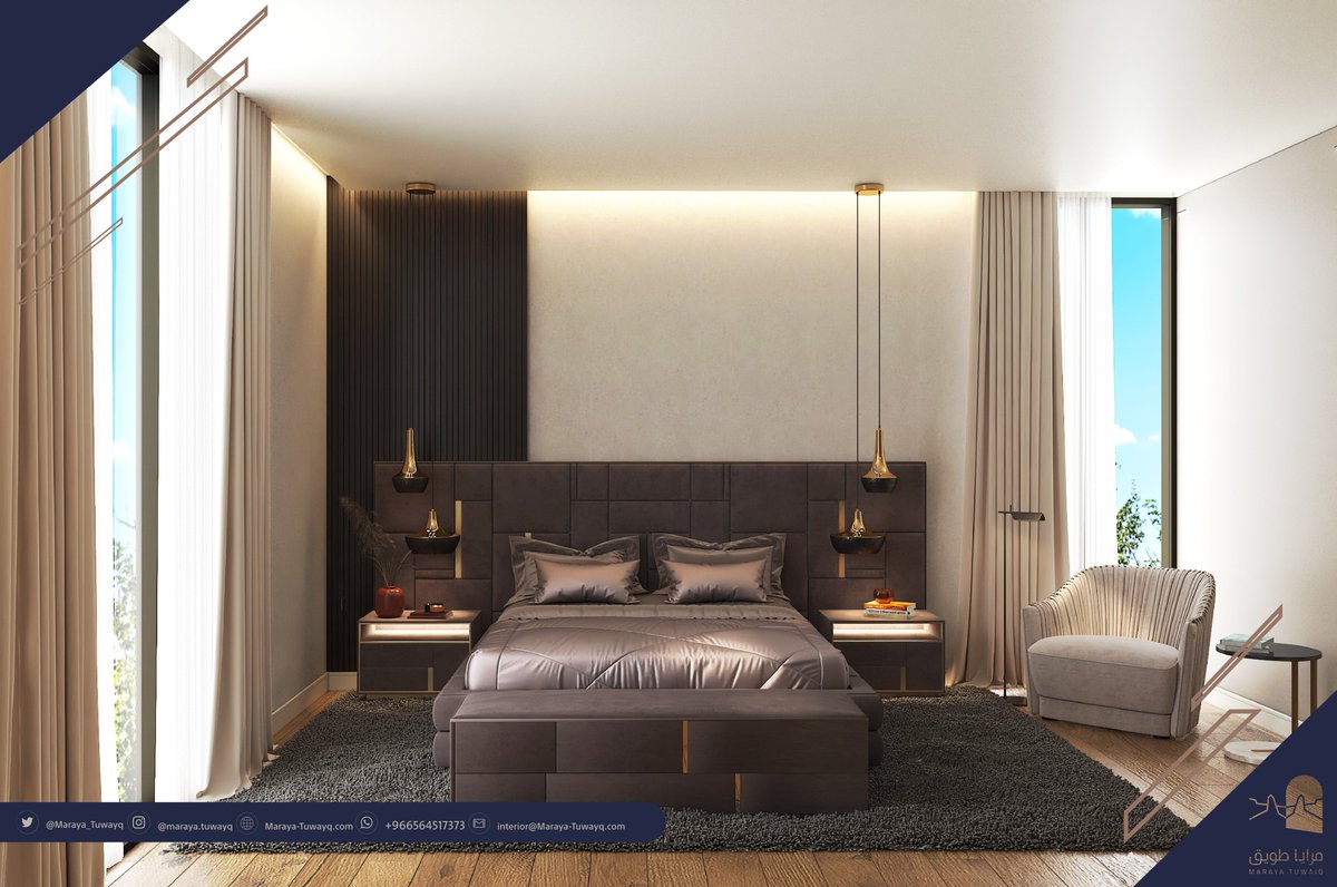 ٣- الإضاءات المعلقة على جانبي السرير خيار جميل وعملي بيوفر لك مساحة على مسطح الكمودينو للاستعمالات الأخرى✅