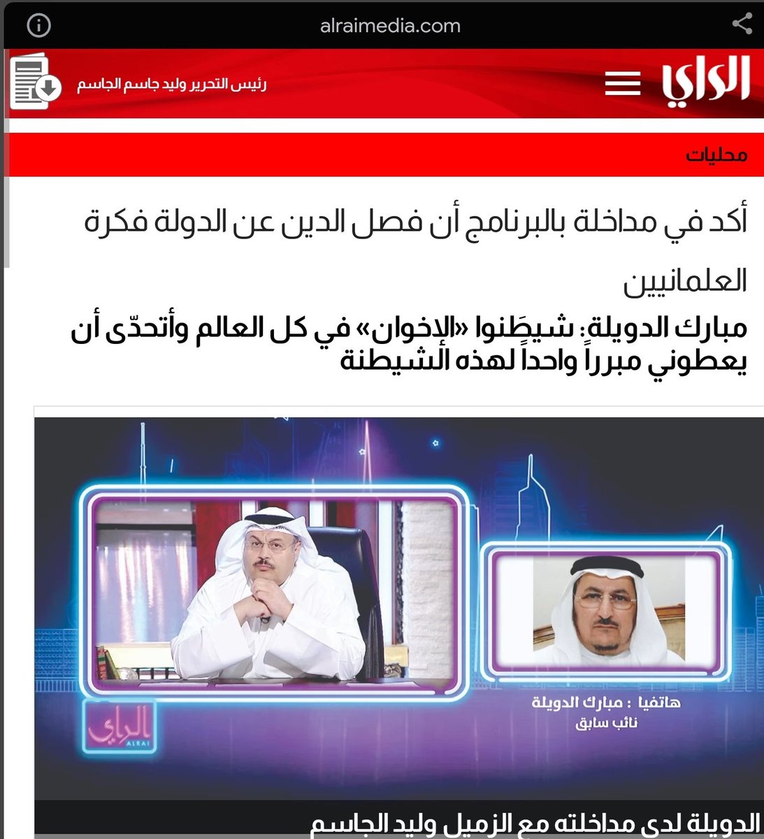 اقتطف أنا هنا لزميلي الإعلامي الإماراتي المميز @MohdTaqi11 لقاء في ديوان ماضي الخميس، يذكر فيه السيد مبارك أن التنظيم تغيّر بتغيّر إسمه، فهل تنطلي هذه الحجج على السياسيين والمتابعين للشأن الكويتي الخليجي العربي؟!