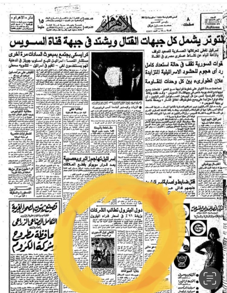 و هذا الخبر تم نشره فى جريدة الاهرام بتاريخ 6 اكتوبر 1973 الطبعة الاولى التى صدرت فجر 6 اكتوبر قبل الحرب ب 15 ساعه و فيه اثبات طلب دول الخليج زيادة الاسعار بنسبه 66%