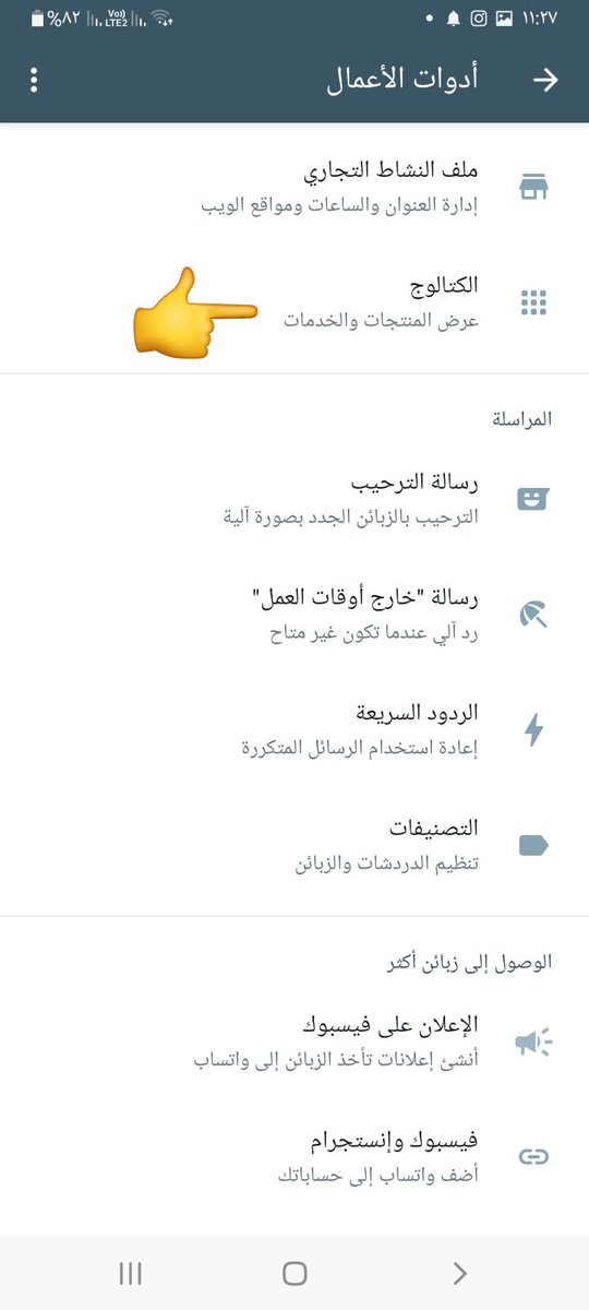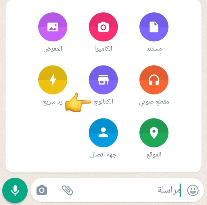 🛑ومن ثم اختيار كلمت الكتلوج و من ثم اختر الكتلوج و ارسلها في المحادثه