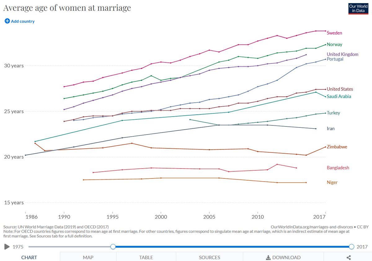 ارتفع متوسط سن الزواج للمرأة من 28 عامًا في عام 1990 إلى 34 عامًا في عام 2017.