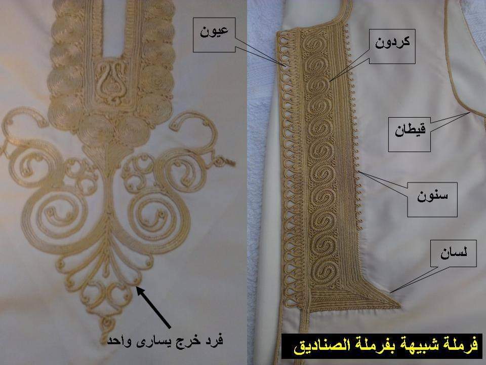 - فرملة الظفيرة: وهي بسيطة التطريز، سهلة الصنعة، قليلة التكلفة. ويعهد للنساء المبتدئات صناعتها.