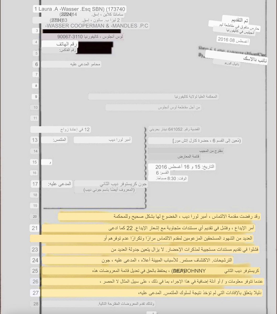 🛑 يشكر رواد التواصل الاجتماعي المتعاطفين مع جوني المحامي بن تشيو وكاميل على طريقتهم بالحديث مع تقديم الأدلة الدامغة ضد آمبر وخاصة كاميل التي نالت على إعجاب من متابعي قضية بسبب أسلوبها القانوني الصارم والتي قالت يجب أن تحاسب آمبر على أفعالها.