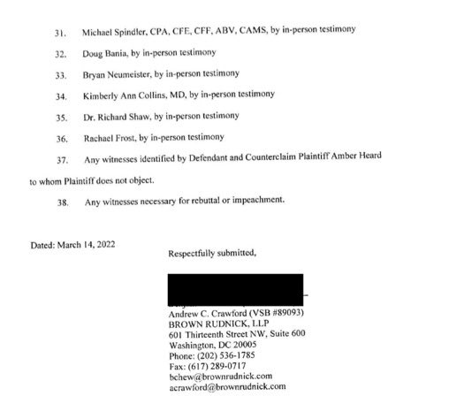 هنا قائمة الشهود لطرفين وقد حصل جوني على أدلة رجحت بنسبة عالية فوزه بالقضية من شهادة معظهم معه ضد ادعاءات آمبر