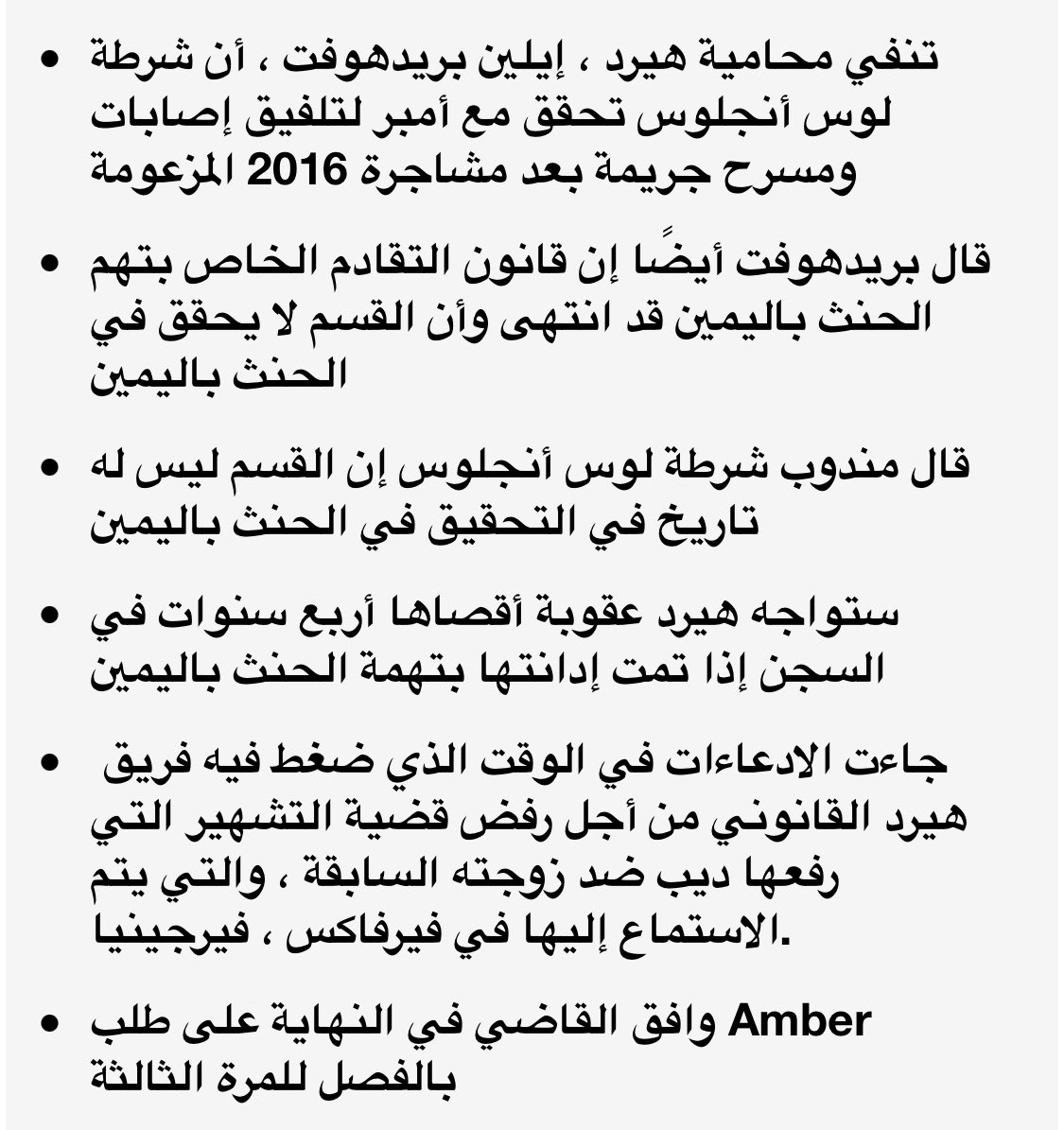 - إذا خسرت آمبر القضية قد تواجه سجناً لمدة 4 سنوات بسبب تزوير الأدلة لأنها تحول القضية جنائية