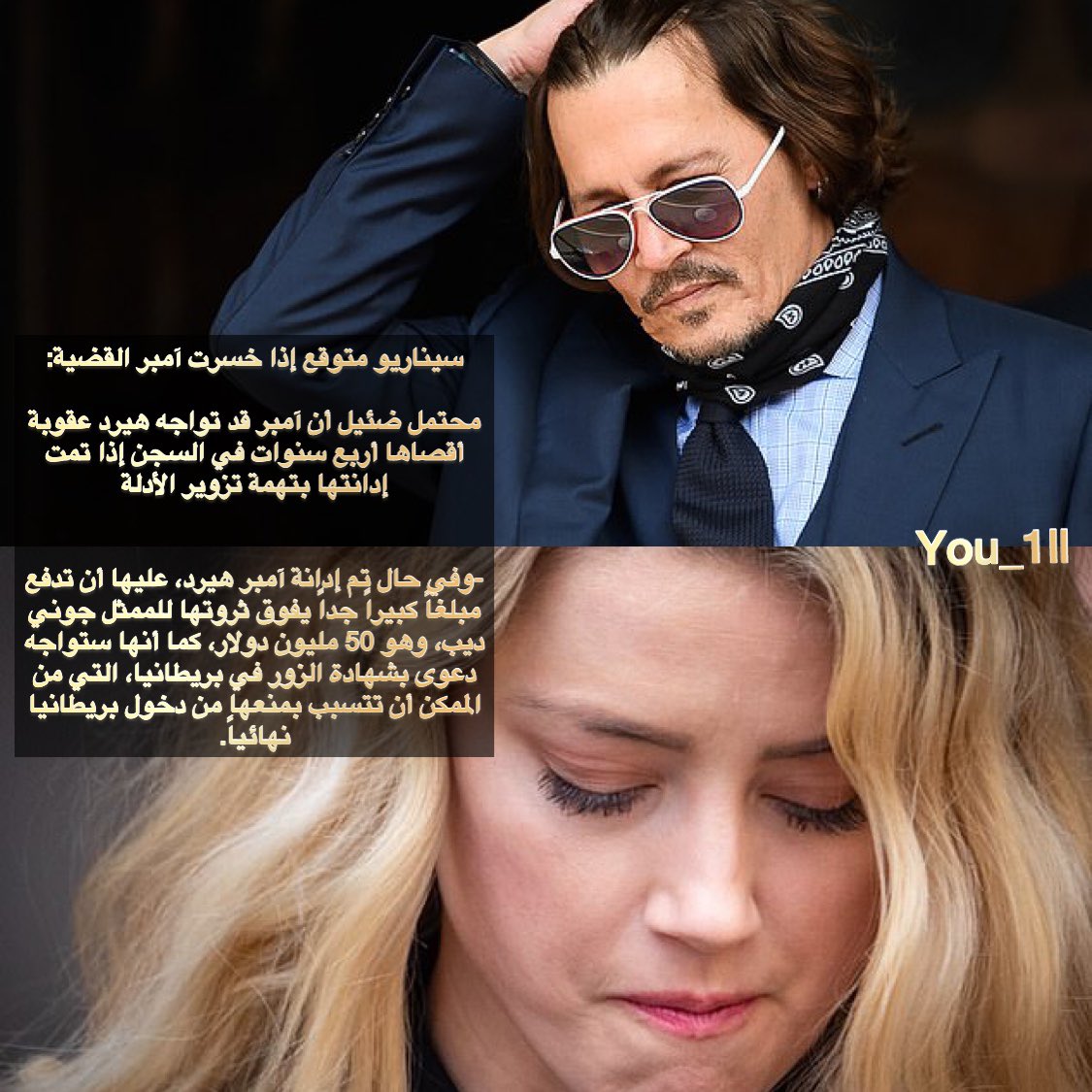🛑 سيناريوهات المحتملة لنهاية القضية جوني وآمبر بالصورة: