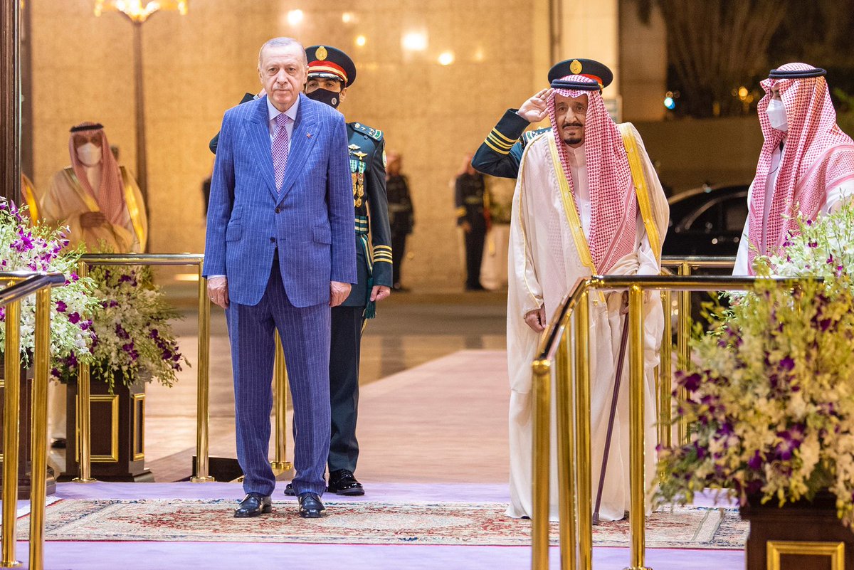 #خادم_الحرمين_الشريفين يستقبل رئيس جمهورية تركيا.. ويُقيم مأدبة عشاء رسمية تكريمًا لفخامته.