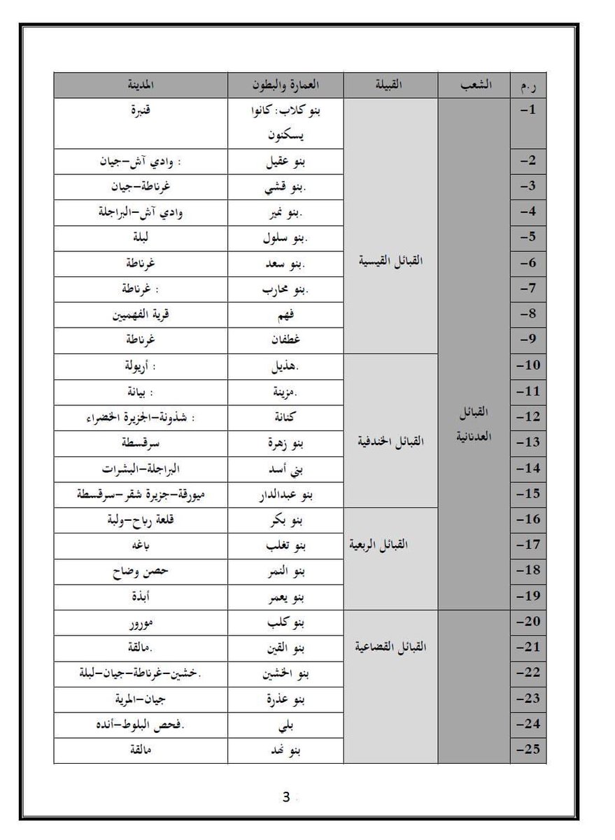 قال ابن غالب: وهم بإشبيلية وغرناطة خلق كثير ومن القبائل غطفان وثقيف وربيعة بن نزار بكر وتغلب جاء في كتاب فرحة الأنفس: إن إقليم هؤلاء مشهور باسمهم بجوفيّ مدينة وادي آش، وهنا انتهت القبائل العدنانية.