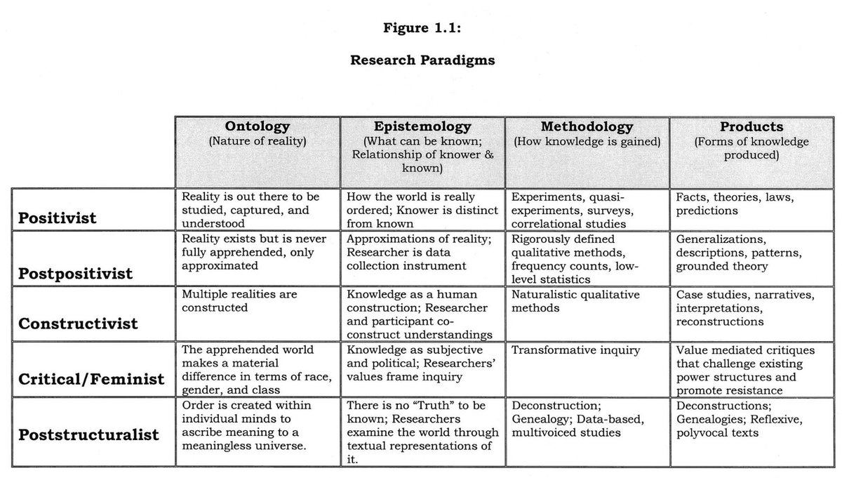 مثلا راح تقول أن الأساس الفلسفي (philosophical underpinning ) للباحث ينبع من نماذج كثيرة