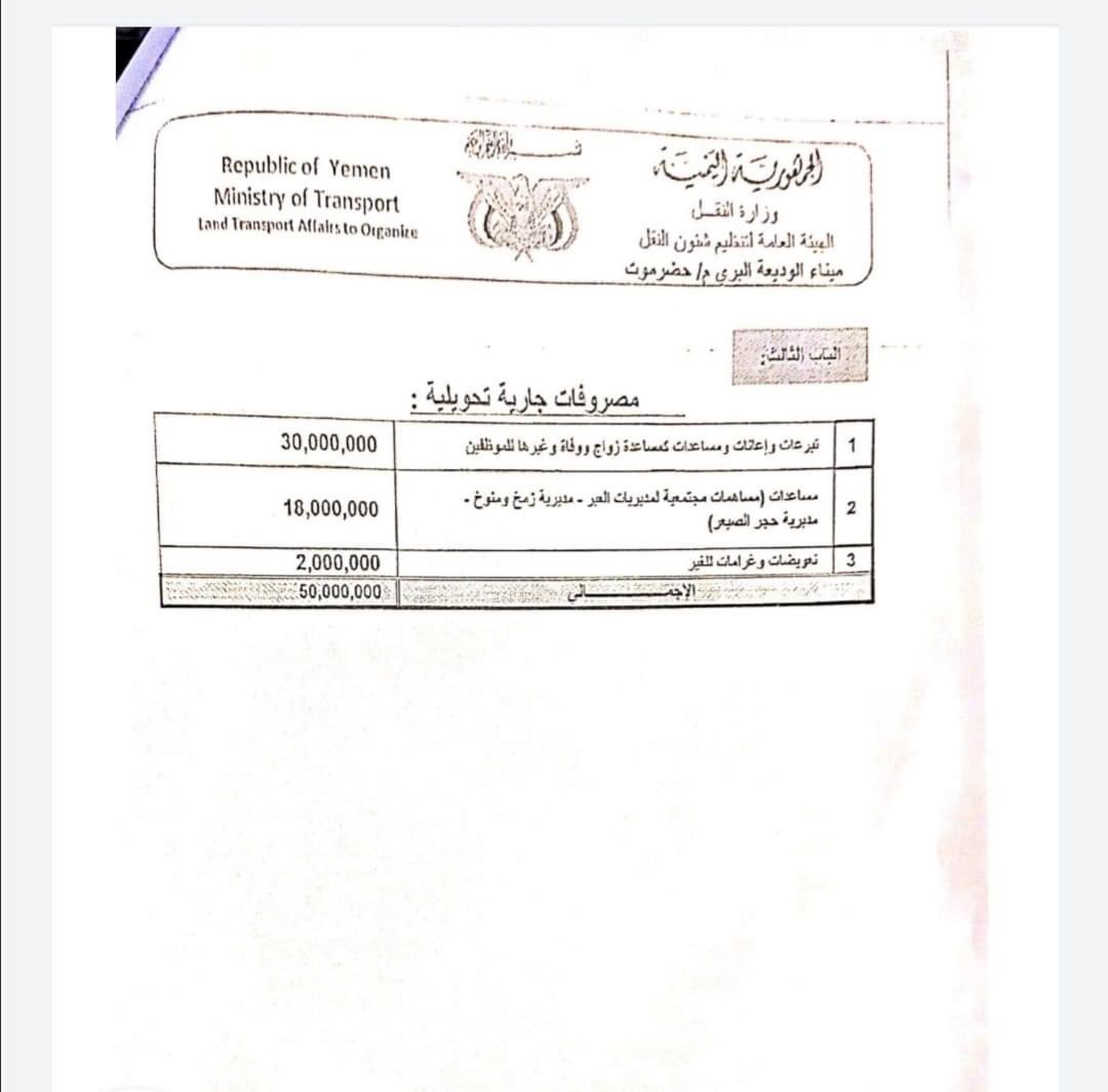 ومنها مبالغ لمديرية العبر وزمخ ومنوخ وبعض البنود الأخرى.