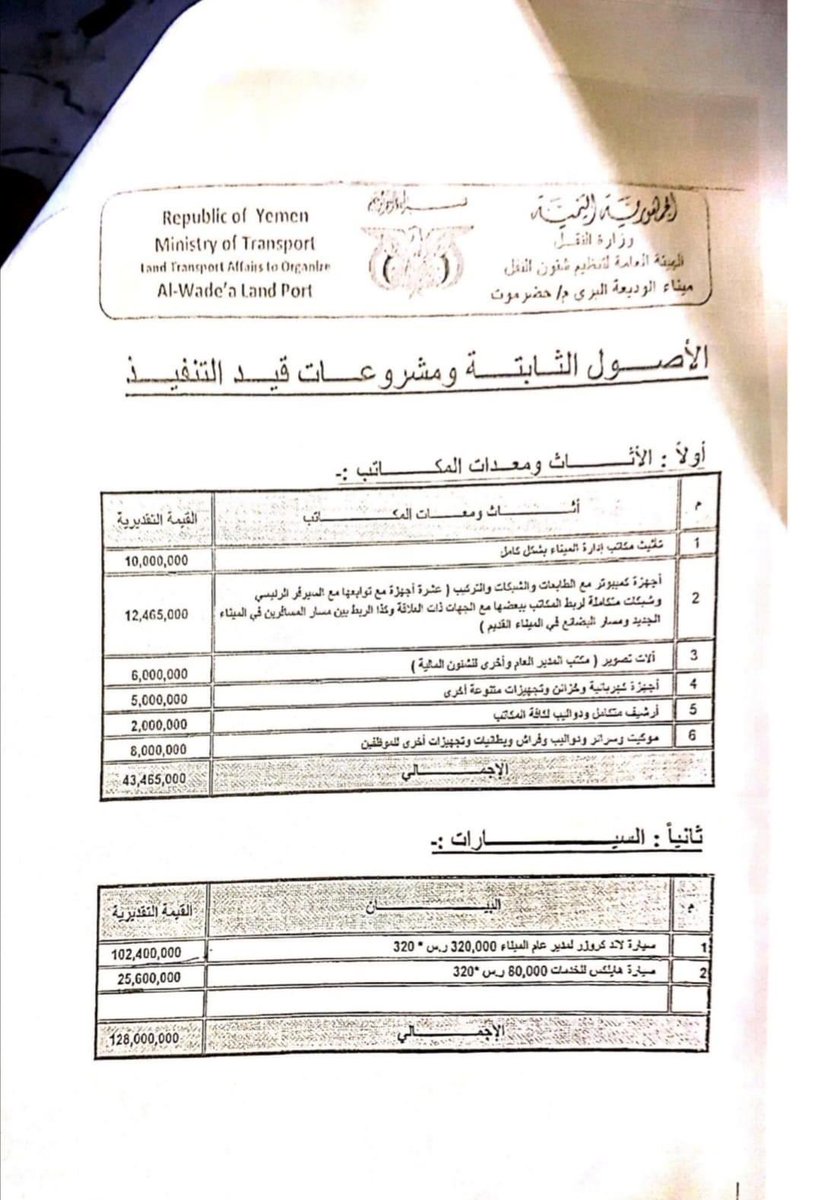 1=سيارة لاندكروزر للمديرالعام 320000 SAR( من صرف320 YER)