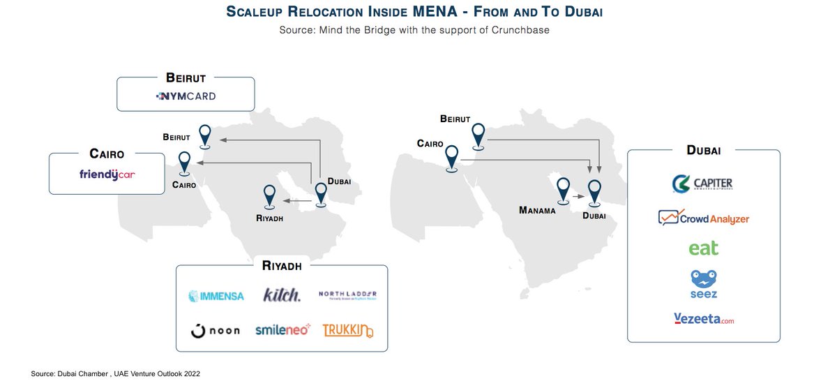 كما تصدرت الإمارات دول المنطقة بمقياس نسبة الاستثمار للشركات الناشئة سريعة النمو Scaleup Investing Ratio (حجم التمويل للشركات الناشئة سريعة النمو كنسبة مئوية من الناتج المحلي الإجمالي) بنسبة %0.77