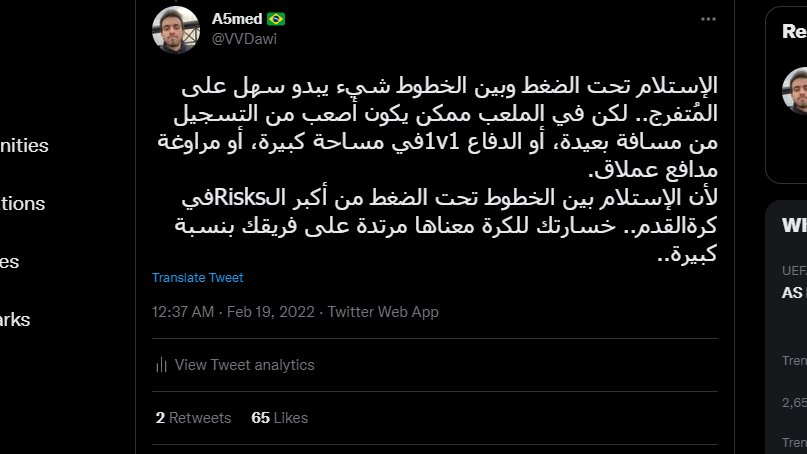 لاعب الوسط اللي عنده حلول فردية وبيقدر يراوغ واحد ضد واحد سواء للخروج من الضغط في مناطقه أو بناء اللعب بشكل عام ، أو استغلال مهارته لصناعة اللعب في تلت ملعب الخصم ، بيوفّر الكتير وبيكون ورقة رابحة وحيطة يستند عليها زملاءه ومدربه ..