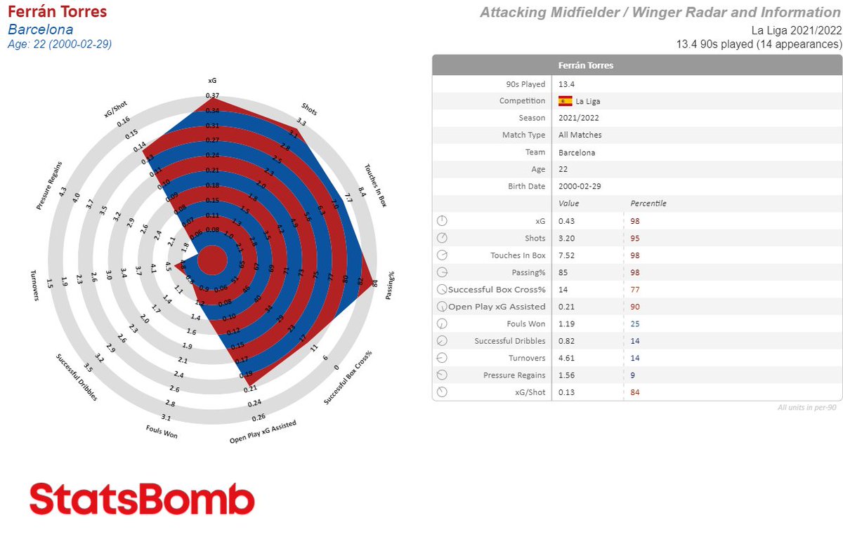 Usando a @StatsBombES nos sale que el jugador más parecido en cuanto a estadísticas avanzadas de las 4 grandes ligas es... Timo Werner, el futbolista que el Barça tuvo que fichar en 2020.