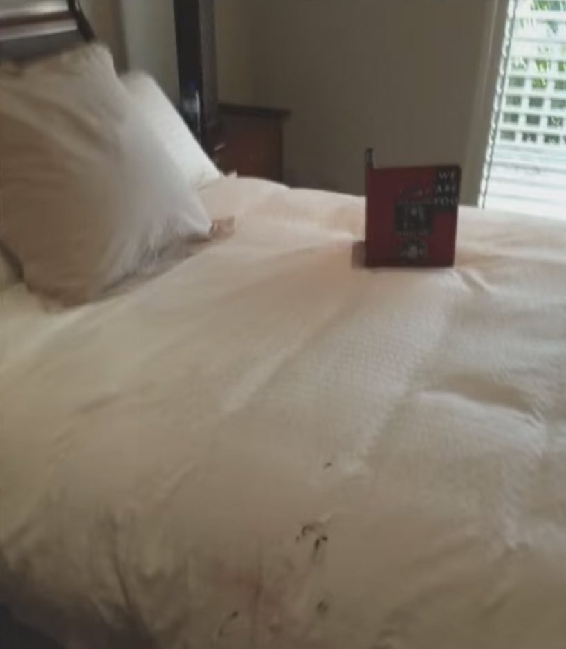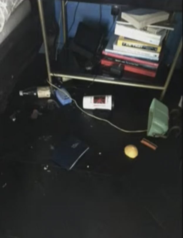 "في ٢٢ مارس كان فيه لوحة هدية من شريكتي السابقة، اللوحة معلقة من شهور لكن لما دخل في بندر فجأة اتهمني اني بعلاقة معها و أخذ اللوحة كان بيحرقها لكن ما قدر لأن الولاعة اللي معه كانت من النوع القديم اللي تشغلها بالابهام و هو ما كان متوازن ف عشان كذا ما قدر يشغلها"