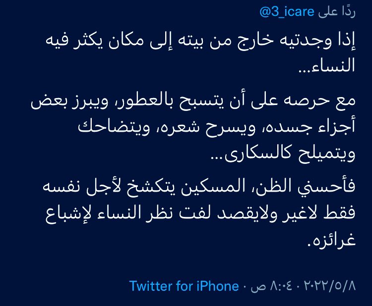 فأحسن الظن، المسكينة تتزين لأجل نفسها فقط لاغير ولاتقصد إغواء الرجال لإشباع غرائزها.