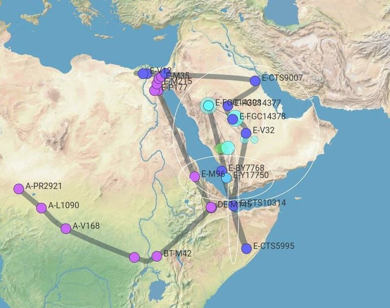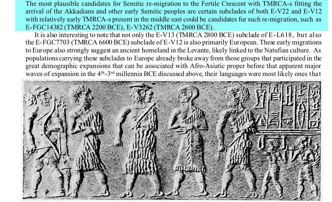 وصول #Akkadians والشعوب السامية المبكرة الأخرى هي بعض الفئات الفرعية لكل من E-V22 و E-V12 ,V32