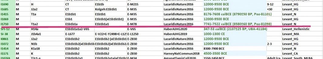 وما يعزز هذا الرأي العثور على 5 رفاة نطوفية بعمر ١٠ آلاف سنة ظهرت على التحور #V12 عين غزال في الاردن موطن لوي وصالح وشعيب ومدين عليهم السلام .