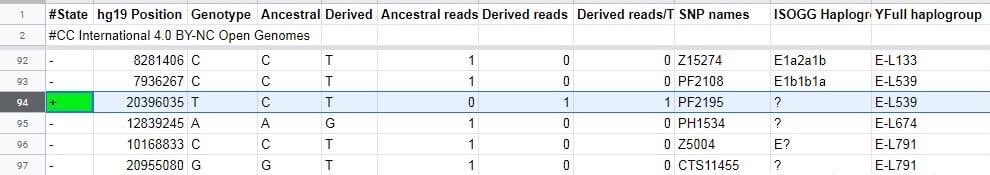 فضلا عن العينة IAM.5 في رفاة كهف عمر موسى موجبة للتحور PF2195 والذي هو أحد محددات الهبلوغروب E-L539 الذي سلف E-M78 من خلال استبدال الأليل الأصلي C بالأليل المتطفر T عند الموقع 20396035 وبناء عليه تم توقعها على pre-E-L539 موقع E-L539 على YFull :