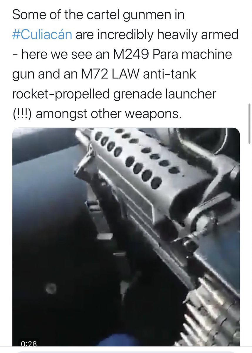 المغردين المكسيكيين يتسألون كيف وصلهم السلاح هذا وخاصة قناصة عيار خمسين بحكم ان الجيش المكسيكي لم يحصل عليه من قبل.