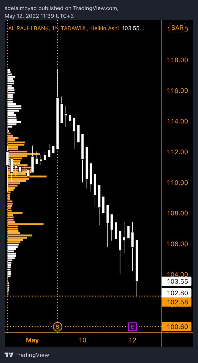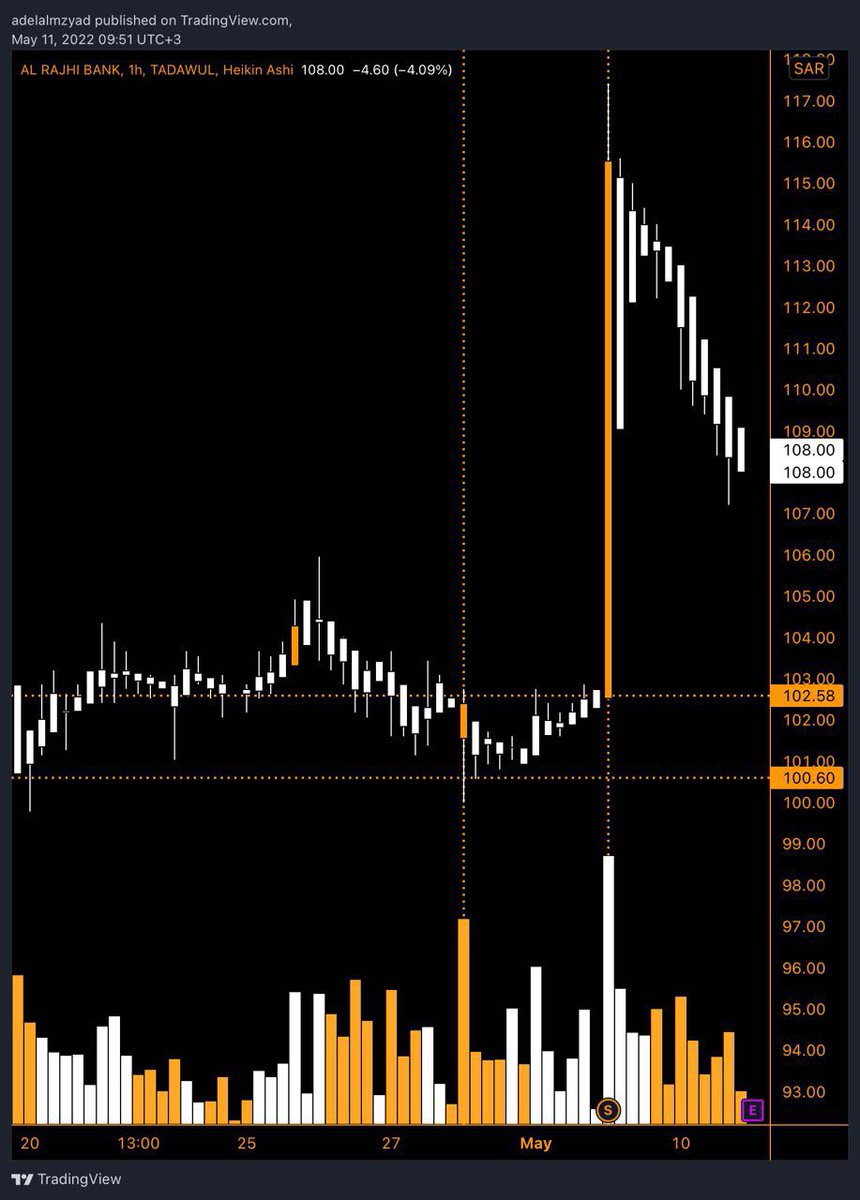 الحمدلله إنني كنت مستثمراً ذكياً و بعت سهم الراجحي بـ 112 قبل أن يبيعه صانع السهم الان السعر 102.60 نزول 10٪🔻