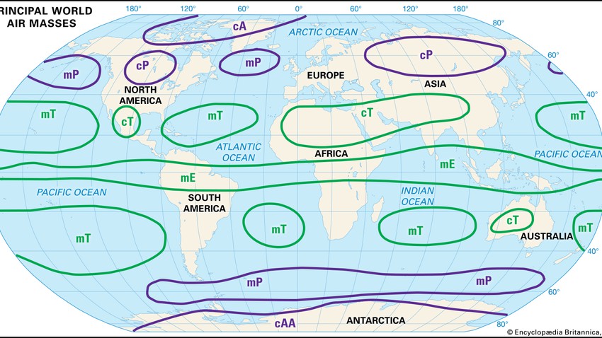 العوامل المؤثرة في المنخفضات الجوية الغربية المرتفعات المدارية، الأوضاع السطحية في المنطقة، الكتل الهوائية القارية الجافة.