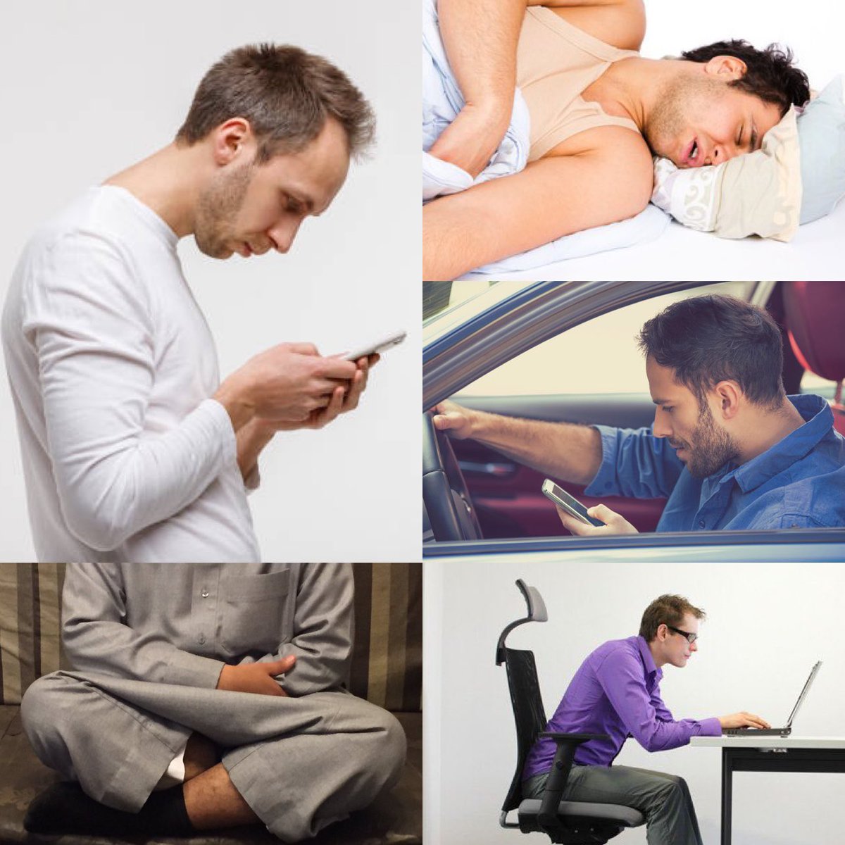 هذا المظهر في تحدّب الظهر وتقدّم الاكتاف صرنا نشوفه للاسف عند صغار السن قبل الكبار