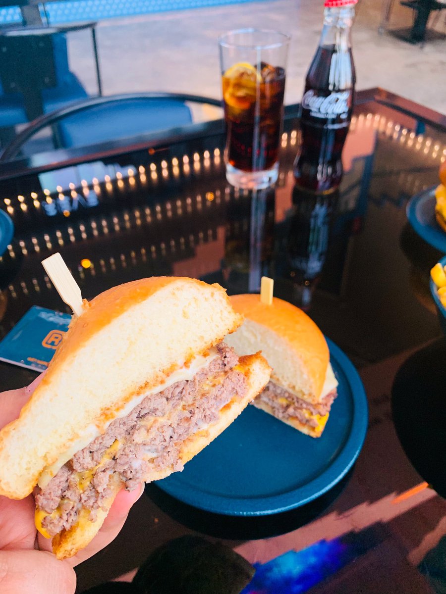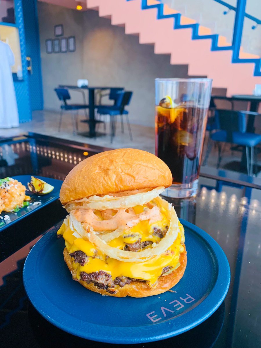 برجر HD لحم دبل مع حلقات بصل وجبن