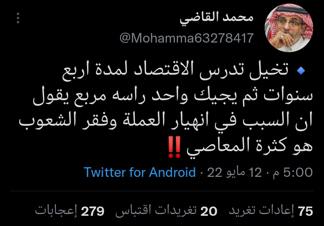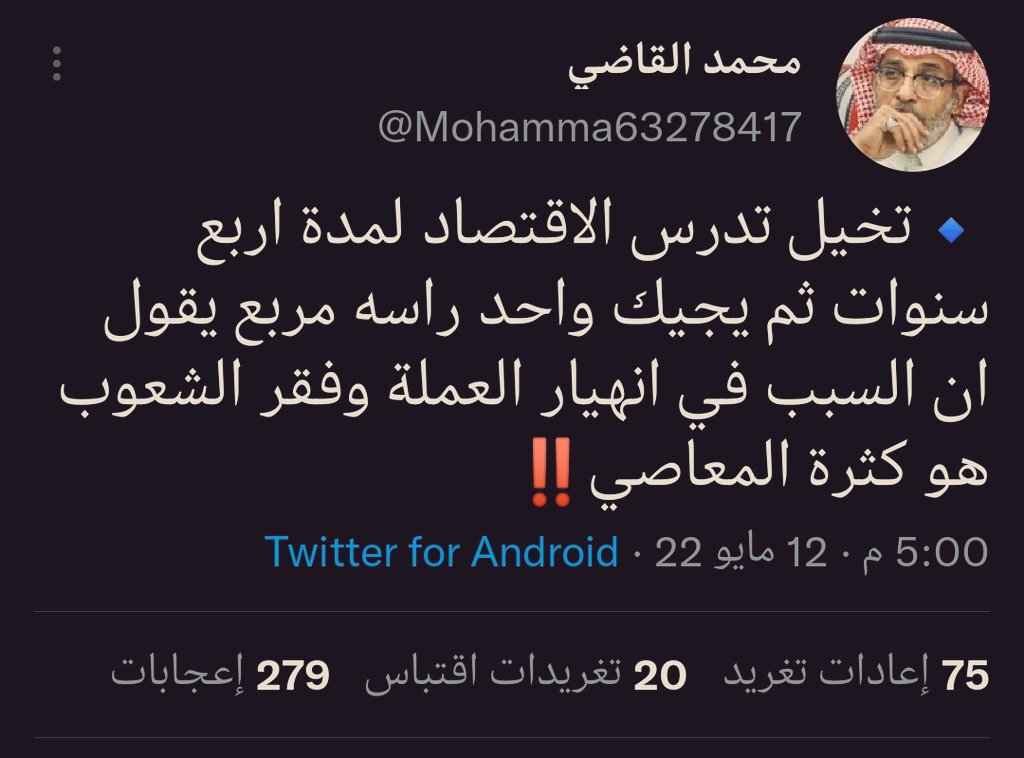 وحتّى النّظام العالمي، أخضىعَهُ فايروس صغير جدًّا لا يُرى، حَبَسىكم في المنازل والمحاجر ثلاث سنين، وأُغلِقت المؤسّسات والمطارات والمحلّات، وتزلزلىت اقتصادات الدّول، وها أنت بعد أن أحاط بك اليأس لجأت إلى ربّ العالمين ليكشف عنك الضُّر : " انخنقنا قسم بالله.. الله يرفع الغمة بس"
