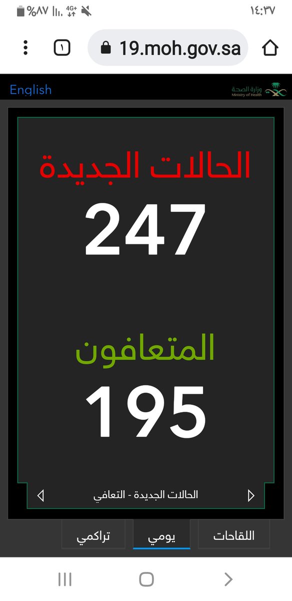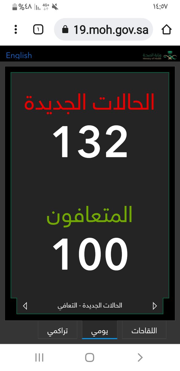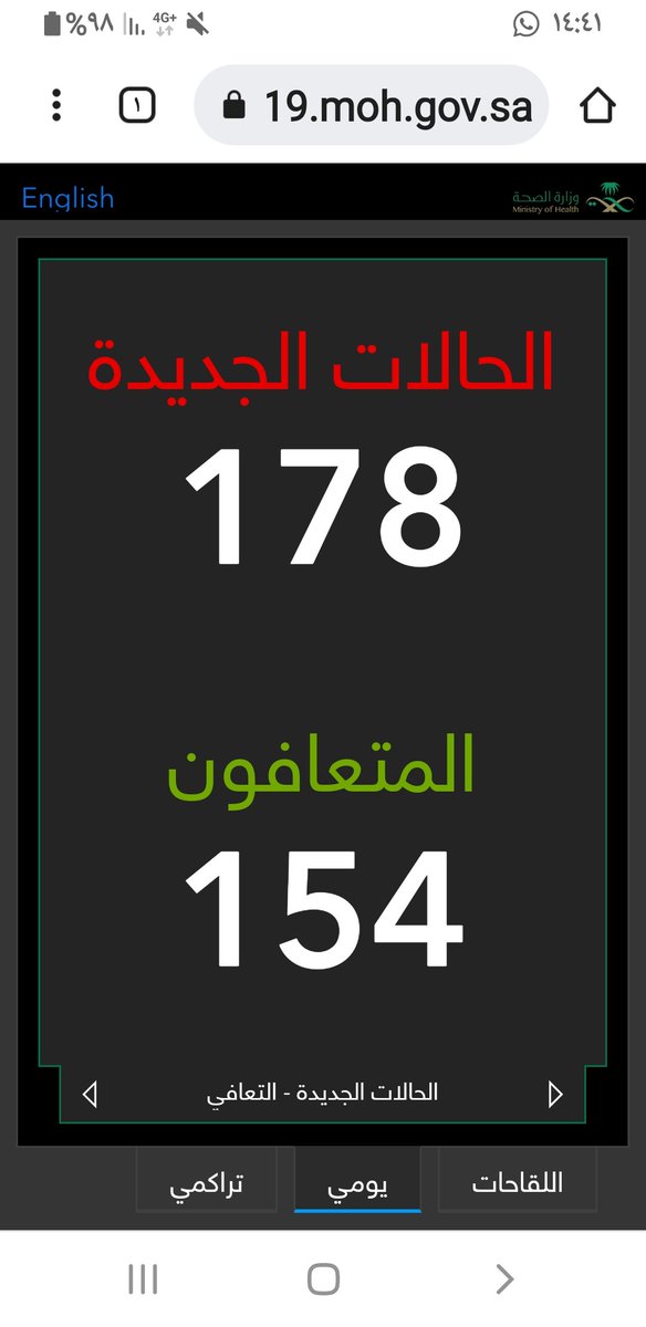 #وزارة_الصحة_السعودية تعلن الحالات الجديدة لفيروس #كورونا_الجديد (#كوفيد_19 ) المسجله ليوم الاحد 14 /1443/10هـ
