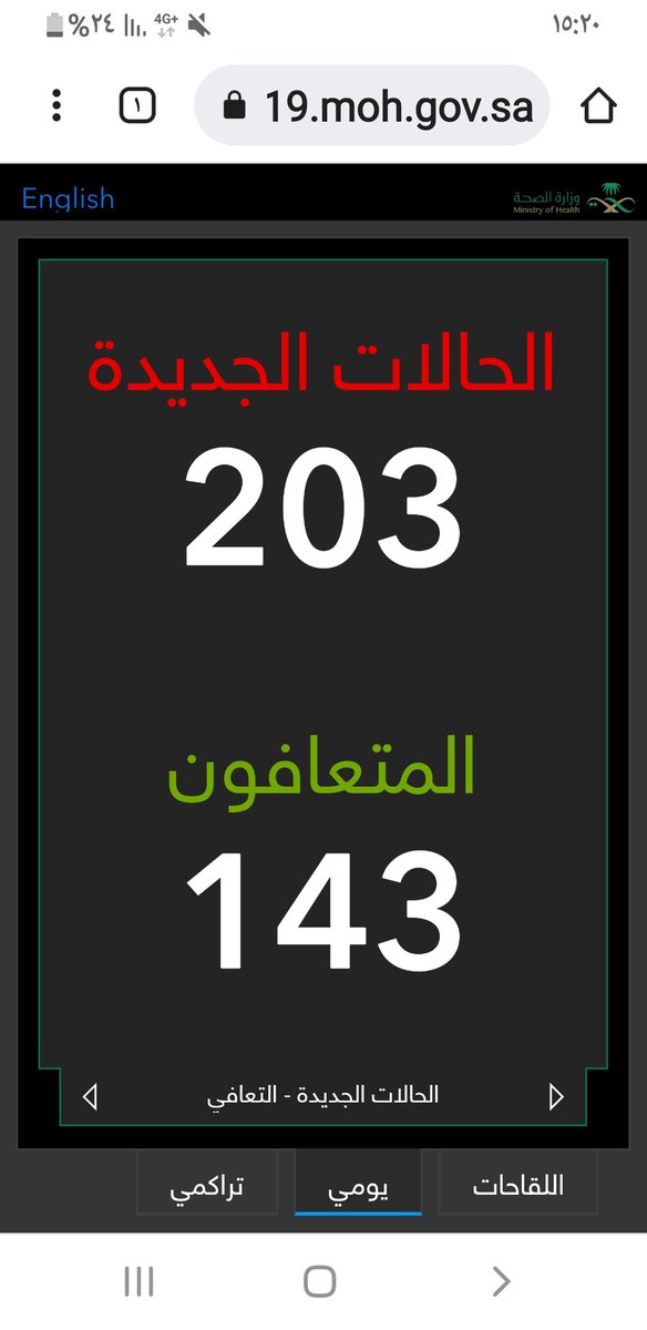 #وزارة_الصحة_السعودية تعلن الحالات الجديدة لفيروس #كورونا_الجديد (#كوفيد_19 ) المسجله ليوم الاربعاء 24 /1443/10هـ