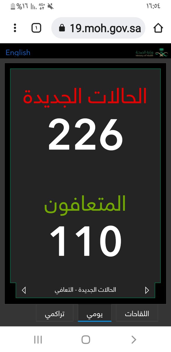 #وزارة_الصحة_السعودية تعلن الحالات الجديدة لفيروس #كورونا_الجديد (#كوفيد_19 ) المسجله ليوم الثلاثاء 16 /1443/10هـ
