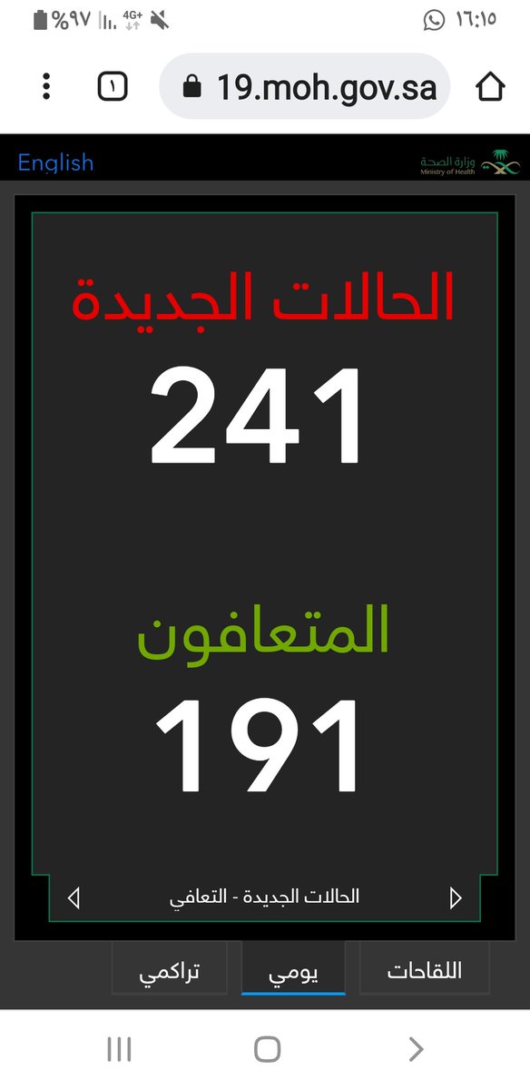 #وزارة_الصحة_السعودية تعلن الحالات الجديدة لفيروس #كورونا_الجديد (#كوفيد_19 ) المسجله ليوم الاثنين 15 /1443/10هـ