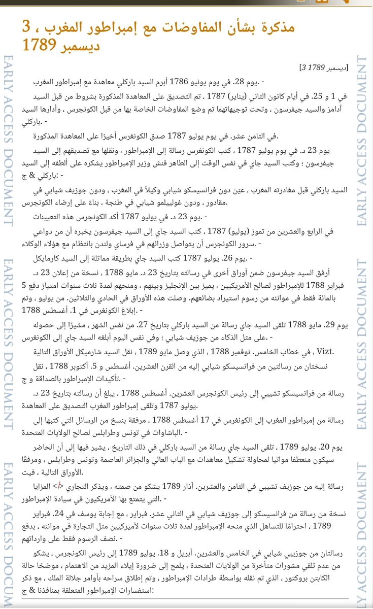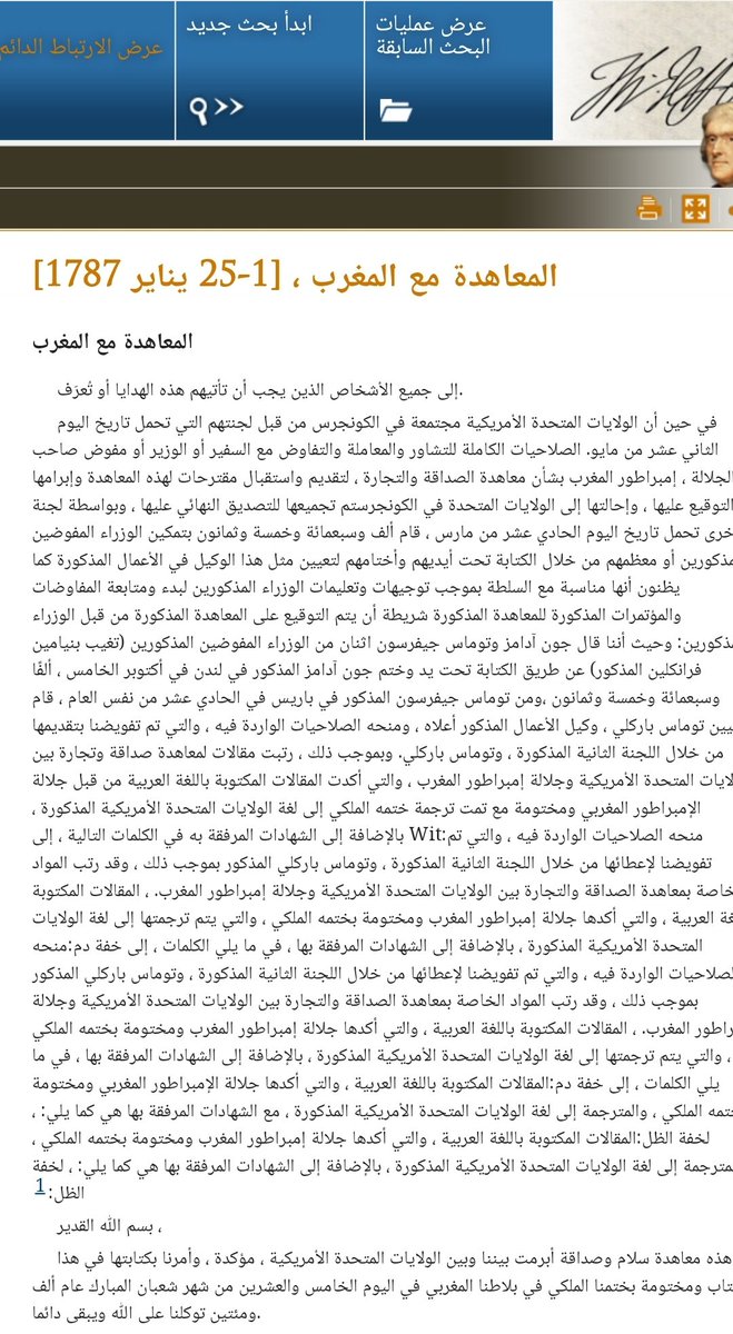 وهدا نص اول اتفاقية تجارة وحماية تمضيها امريكا.. وكانت مع امبراطورية المغرب.. الاتفاقية بكاملها هنا ببنودها الخمسة والعشرين.. ارجو الاطلاع على بنودها وطريقة صياغتها...