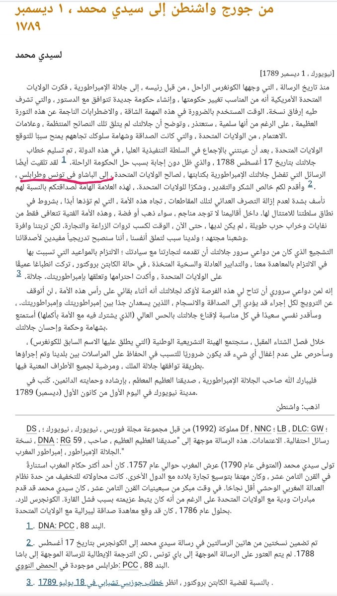 رسالة من جورج واشنطن مول الكوابس للسلطان محمد التالت.. يخبره بتغيير الحكومة الامريكية.. ويشتكي له ويطلب حمايته من باشا تونس وطرابلس العتمانيين ويصفها بالمقاطعات... ولا وجود لشيء اسمه الجزائر.. ارجوا ان تركزوا على اسلوب واشنطن مخاطبا الامبراطور..