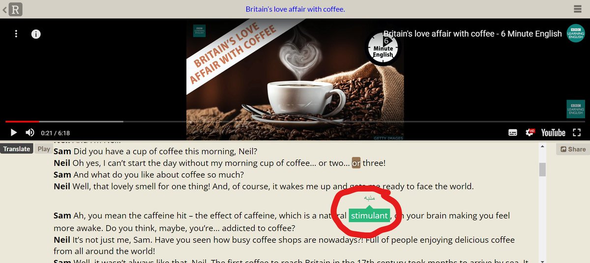 موقع رائع، لا يمكنني الوصف😍إذا ما عرفت المعنى الي في الفيديو اضغط على الكلمة ويظهر لك معناها، وراح تنحفظ الكلمة في قائمة الكلمات التي تريد حفظها ومراجعتها، ويعمل لك عليها اختبارات بسيطة للتذكر!