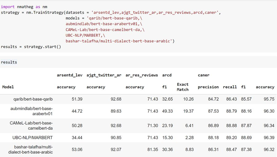 8. نماذج : تمكن هذه المكتبة من تدريب عدة نماذج في مجال معالجة اللغة ، واختبارها على عدة بيانات في آن واحد وبسهولة تامة