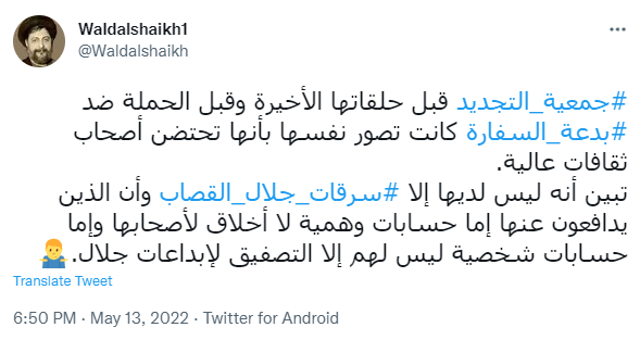 أصدعونا لمدة ٢٠ سنة، وبدلاً من أن يناقشوا كتب #جمعية_التجديد، أخذوا يتهمونهم بالسرقات، ورفعوا ضدّهم القضايا، وألّبوا ضدهم فرق الأبحاث والتيارات "المنتجة" الأخرى. والنتيجة أنهم لم يثبتوا السرقات وخسروا قضايا المحاكم، ولازالت كتب التجديد باقية🤷♂️