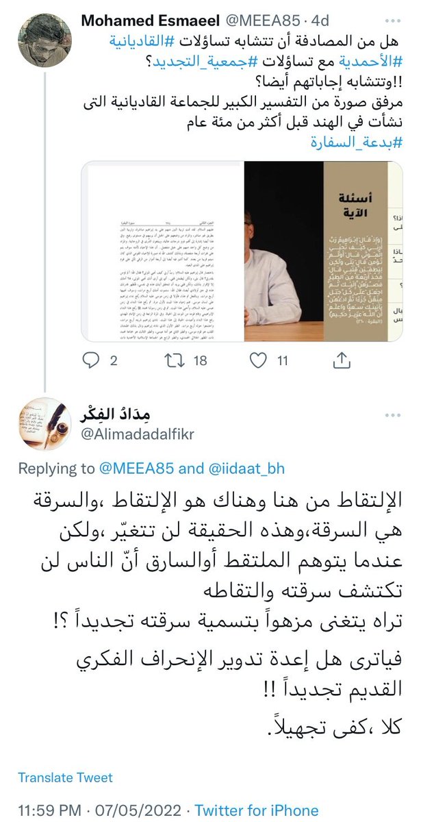 فقد سبق وان وصم طرح التجديد القرآني بالسرقات عن الاحمدية 🤷♂️، وهذا الحساب توقف عن التغريد من بعد مسرحية "الاستبصار" الكاذبة في ليلة القدر 😅