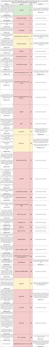 - الأحمر = اختلاف في الرأي، أو وجوده عند جهة وغيابه عند الأخرى