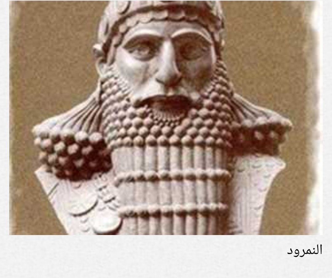 بعد ايام وبينما كان نمرود جالس في غرفته بالقصر شاهد في اخر الغرفة وتحت ضوء المشاعل التي تضيء زوايا غرفته الواسعة شخص يقف مستندا على عصا فأقترب منه نمرود حتى ظهرت ملامح هذا الشخص .. نعم انه ذلك العجوز القبيح الذي قتله من قبل