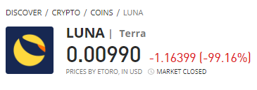 وبسبب هذا إنخفضت قيمة UST إلى 60 سنت