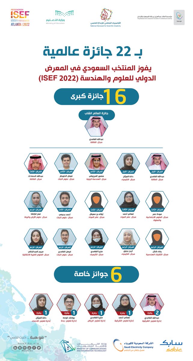 في دورتها الحالية لعام ٢٠٢٢، اقيمت #ISEF2022 في اتلانتا بولاية جورجيا الأمريكية خلال الفترة من ٧-١٣ مايو