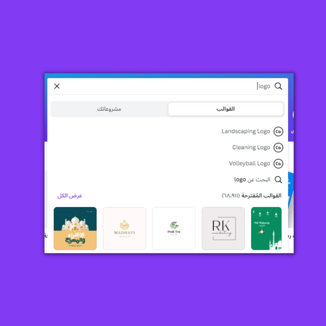 اول خطوة نروح على البحث في كانفا ونكتب "Logo "