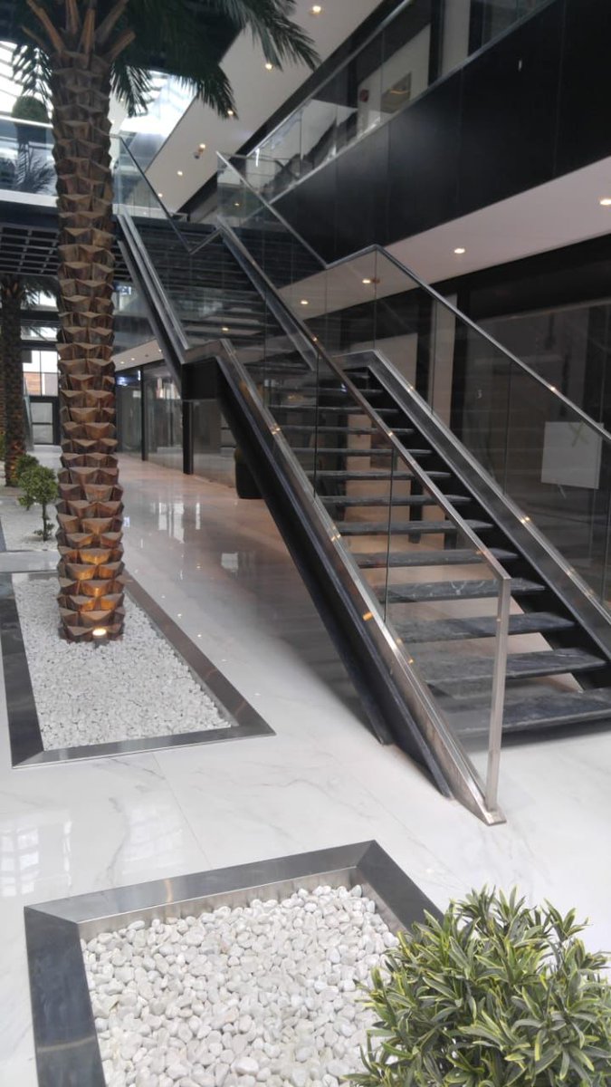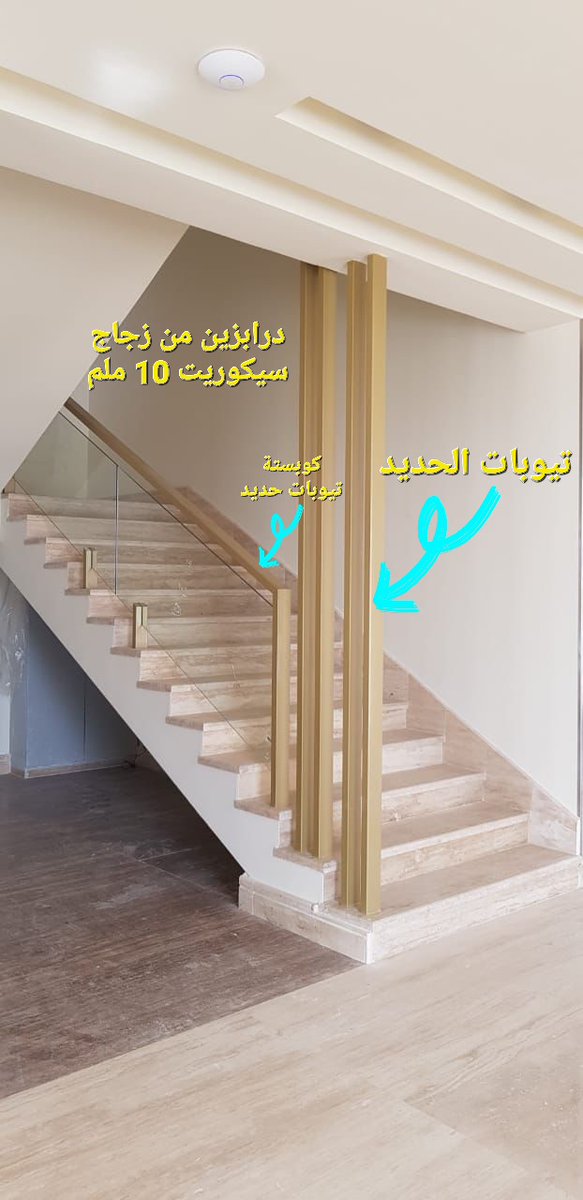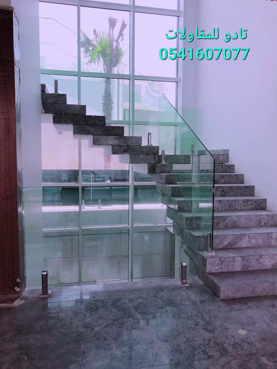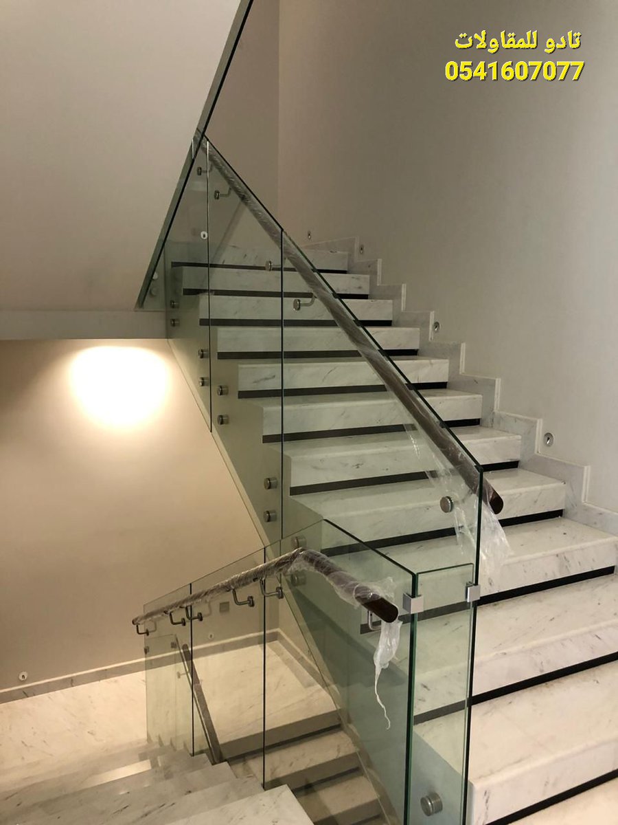 انواع درابزين الدرج من الزجاج سيكوريت التي تنفذها مؤسسة تادو للمقاولات في #الرياض : سماكة الزجاج يمكن أن تكون 8-10-12 ملم والألوان متوفرة بدرجات عديدة منها الشفاف والرمادي الفاتح والأسود.